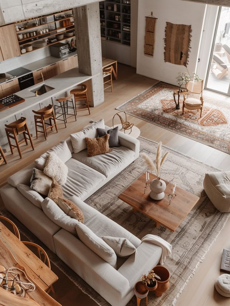 ترکیب مینیمالیسم با عناصر طبیعی مانند چوب، سنگ، گیاهان سبز و الیاف طبیعی به ایجاد فضایی دلنشین و آرام کمک میکند. استفاده از گیاهان آپارتمانی مانند فیکوس، سانسوریا و زامیفولیا باعث میشود که خانه زنده تر و سرزنده تر به نظر برسد. همچنین میتوان از پارچه های کتان و پشم برای پرده و فرش های ساده استفاده کرد.